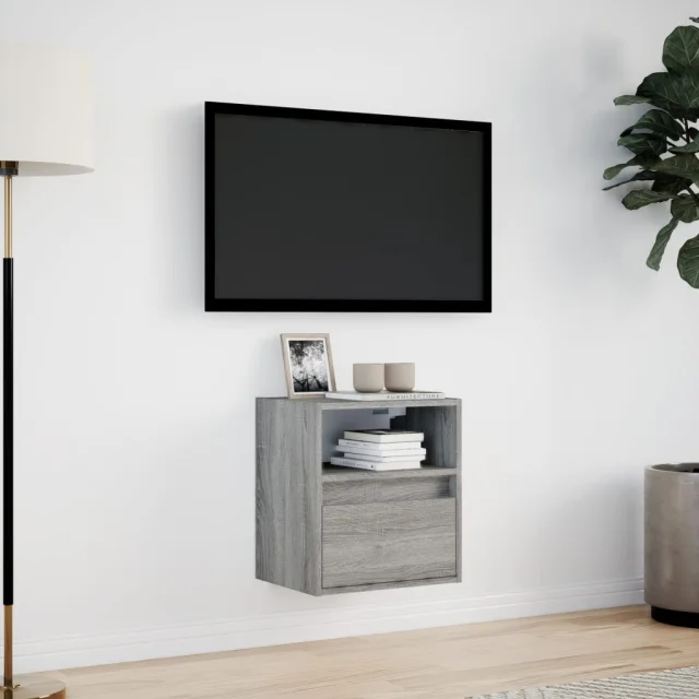 Stenska TV omarica - TV stojalo - Televizijska omarica z LED lučkami siva sonoma 41x31x45 cm