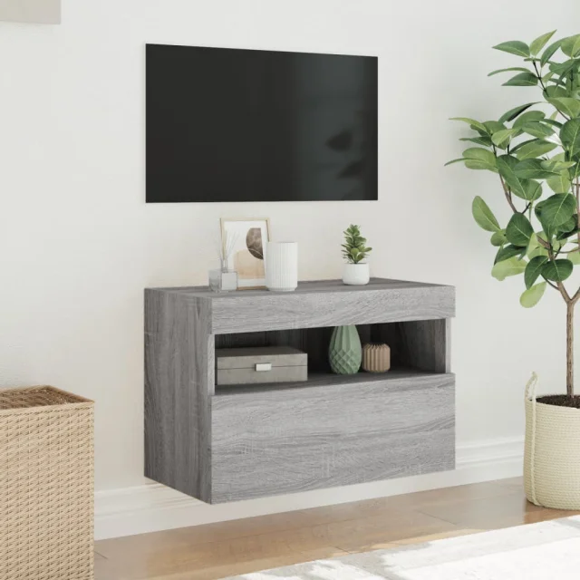 Stenska TV omarica - TV stojalo - Televizijska omarica z LED lučkami siva sonoma 60x30x40 cm