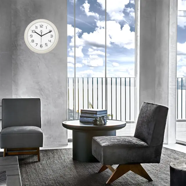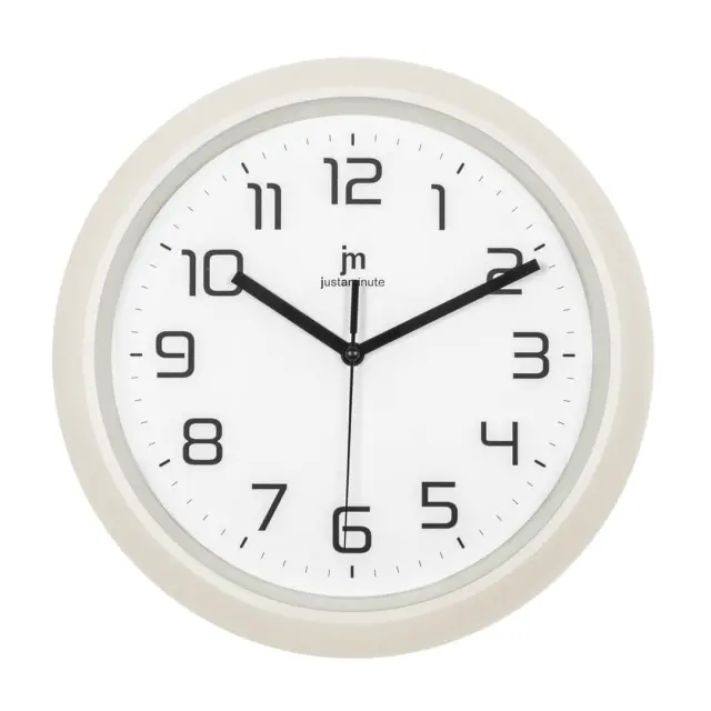 Stenska ura Lowell se odlično poda v vsak prostor – naj bo to domača dnevna soba, pisarna ali sodobna kuhinja. Njeno krem ogrodje iz kakovostne ABS plastike ji daje moderen, a nevpadljiv videz, ki se lepo zlije z različnimi interierji. Elegantna bela številčnica z jasno čitljivimi arabskimi številkami zagotavlja odlično berljivost tudi na daljavo, medtem ko kvarčni mehanizem s tihim delovanjem omogoča natančno merjenje časa brez motečega tiktakanja. Ura deluje na eno baterijo AA 1,5 V (ni priložena), kar zagotavlja enostavno uporabo in vzdrževanje.