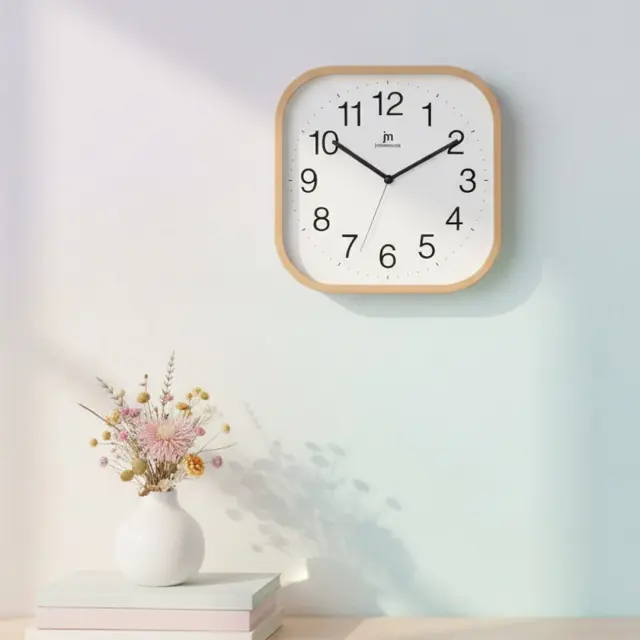 Kvadratna stenska ura z oglatimi robovi dimenzije 30 × 30 cm navdušuje s čistimi linijami in sodobnim videzom. Njeno plastično ohišje zagotavlja lahkotnost in vzdržljivost, spredaj pa je zaščitena z steklom, ki poskrbi za eleganten zaključek in dodatno zaščito številčnice. Ura je opremljena z kvarčnim mehanizmom s tihim neprekinjenim gibanjem (Sweep movement), zato deluje brez motečega tiktakanja. Primerna je za uporabo v dnevnih prostorih, spalnicah, pisarnah ali drugih okoljih, kjer sta pomembna tišina in sodoben dizajn. Preprosta, funkcionalna in estetsko dovršena stenska ura se lepo vključi v vsak interier. Deluje na baterijo AA, ki ni priložena.