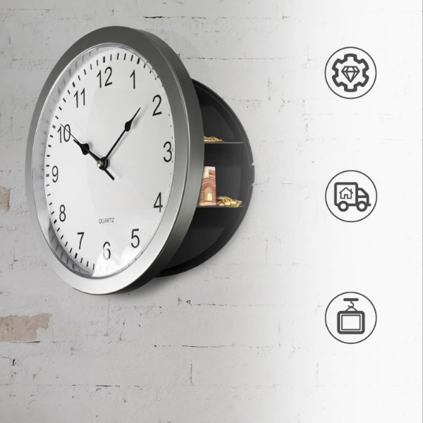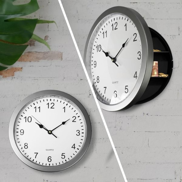 Ta popolnoma funkcionalna stenska ura diskretno skriva vaše dragocenosti na očeh.