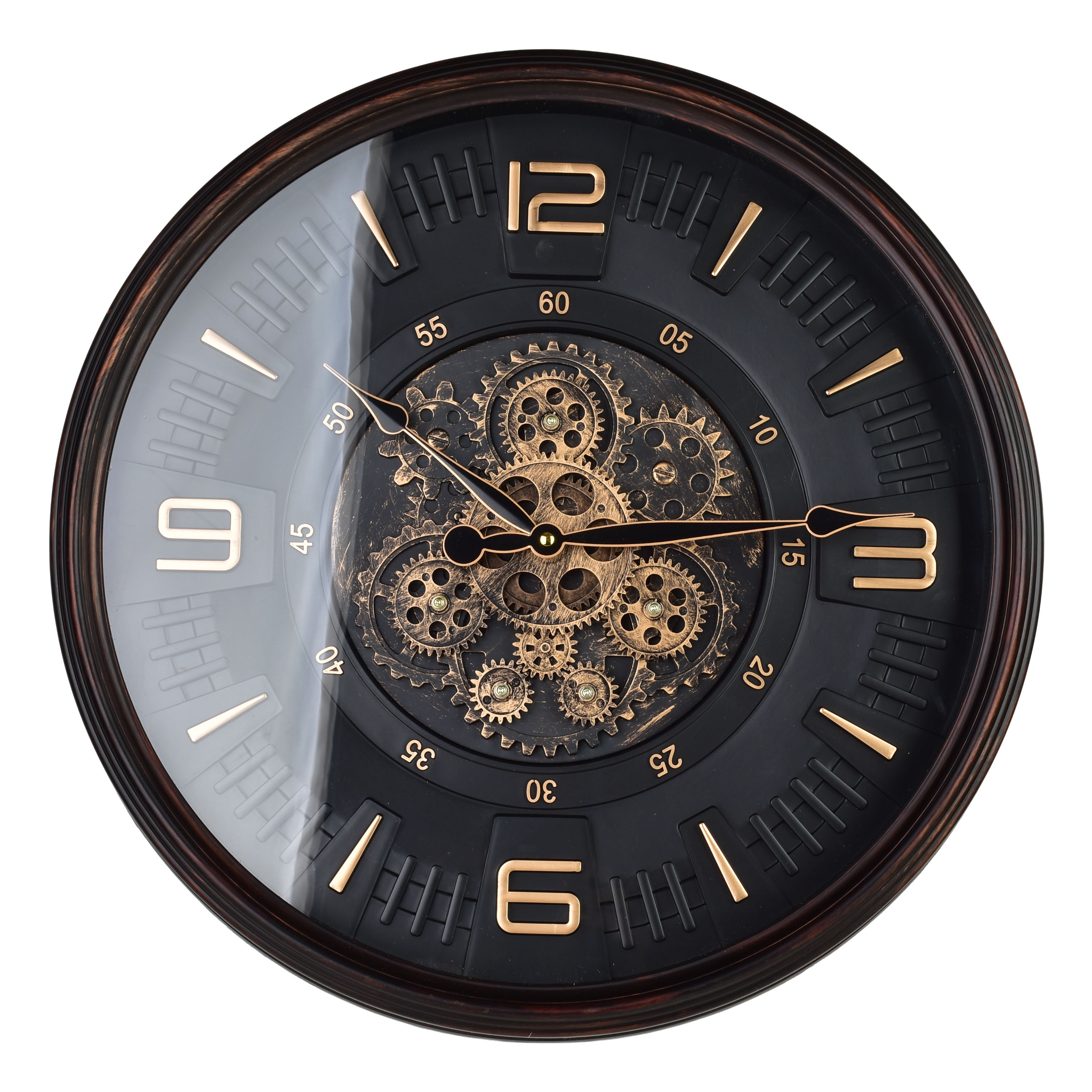 Okrogla številčnica ima jasno vidne reliefne arabske številke v sijoči zlati barvi, kar omogoča hitro in enostavno odčitavanje časa. Zlati kazalci se z oznakami barvno uskladijo in poskrbijo za urejen videz ter natančno delovanje mehanizma.