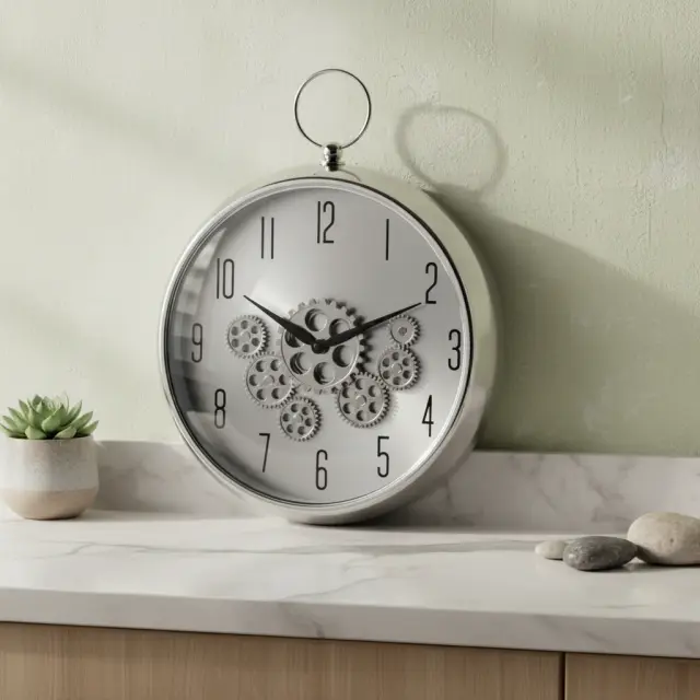 Gladko površino je enostavno očistiti, natančen mehanizem pa zagotavlja zanesljivo merjenje časa. Ura je opremljena z gibljivim mehanizmom in nosilcem za namestitev na steno.
