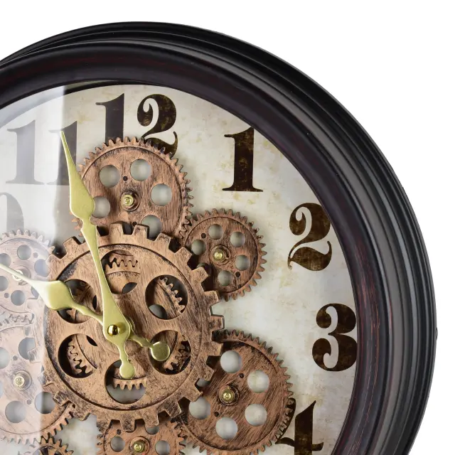 Posebnost ure je odprt, gibljiv mehanizem, viden skozi stekleno sprednjo stran, ki ustvarja dinamičen videz in občutek tehnične prefinjenosti. Črn okvir s bakrenimi detajli poskrbi za kontrast in se lepo ujema z modernimi, loft ter industrijskimi interierji.