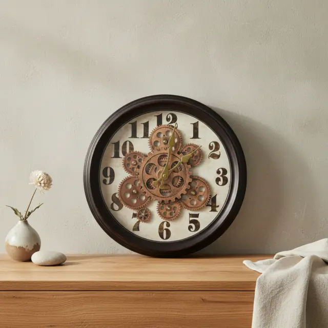 Stenska ura RAMSEY (35 x 35 x 7 cm) je dekorativen in hkrati funkcionalen dodatek, ki prostoru doda izrazit industrijsko-sodoben značaj. Primerna je za dnevno sobo, pisarno, kuhinjo ali hodnik, kjer želite eleganten poudarek na steni.
