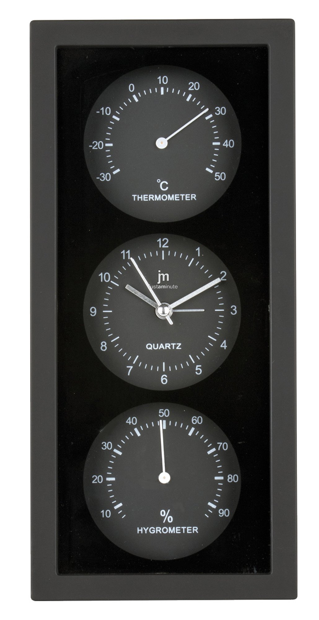 Stenska ura s prikazom temperature in vlage h26cm / črna / pvc