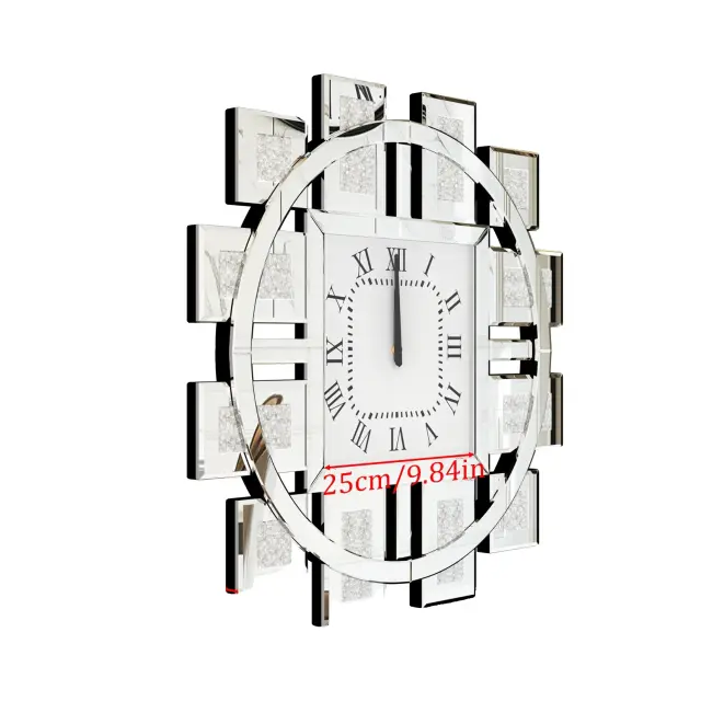 • Nepravilna velika crush diamantna ogledalna stenska ura