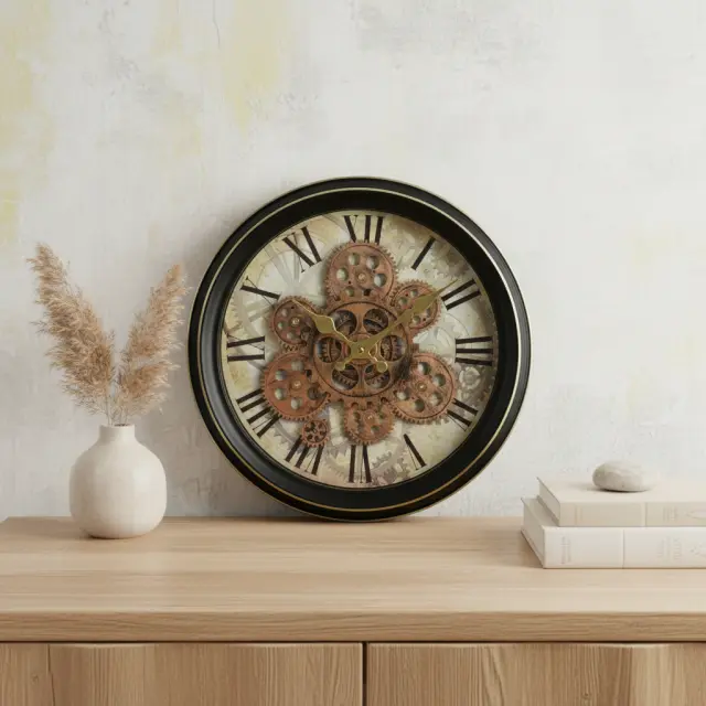 Stenska ura RAMSEY s premerom 35 cm je izrazit dekorativni kos, ki prostoru doda sodoben in industrijski značaj. Zaradi elegantne črne izvedbe z detajli v bakrenih odtenkih se lepo poda v dnevno sobo, kuhinjo, pisarno ali hodnik ter se zlahka uskladi z materiali, kot so kovina, beton in les.