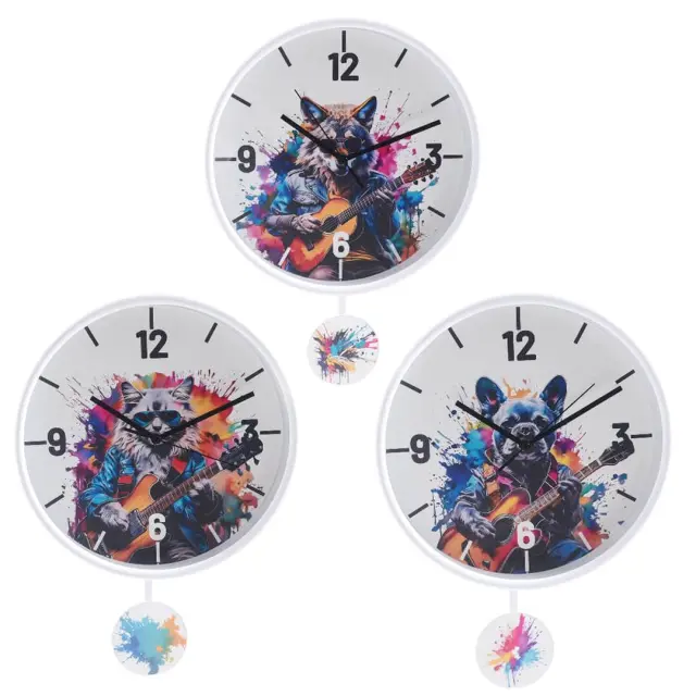 Popestrite otroško sobo z unikatno stensko uro Rock, ki združuje funkcionalnost in zabaven dizajn. Ura z različnimi motivi živali v rock stilu bo navdušila vsakega malega oboževalca glasbe. Vsak model krasi živahna in barvita ilustracija, nihalo pa poskrbi za dinamičen in igriv učinek. Ura je izdelana iz ABS ohišja, ima jasno berljive arabske številke in deluje na eno AA 1,5V baterijo (ni priložena).