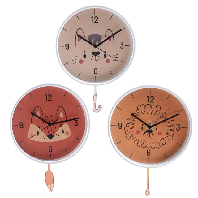 Čudovita otroška stenska ura z motivom leva, mačke ali lisice bo s svojo ljubko podobo in premičnim repkom kot nihalom očarala otroke in popestrila vsako sobico. Zabaven dizajn in premišljeni detajli spodbujajo otroško domišljijo in ustvarjajo prijetno vzdušje.