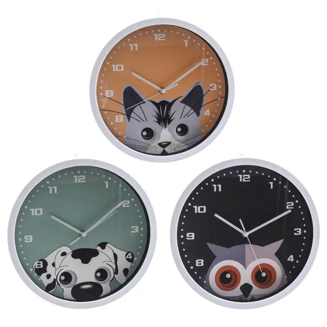 Vstopite v svet zabavnega merjenja časa z otroško stensko uro, ki bo navdušila vsak kotiček otroške sobe! Izbirate lahko med ljubkimi motivi dalmatinca, sove ali mačke, kjer se oči likov nežno premikajo levo in desno. Ta igrivi mehanizem z nihalom v obliki premikajočih se oči doda uri edinstven značaj in poskrbi za nasmehe malih (in velikih) opazovalcev.