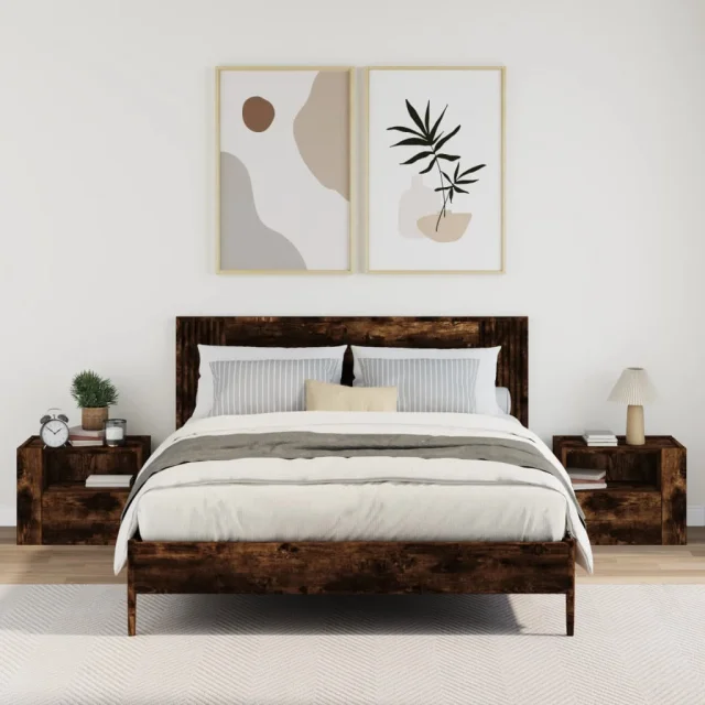 Stenski Dvo delni komplet Nočne omarice - Nočne mize dimljeni hrast 45x30x35 cm