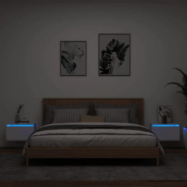Stenski Dvo delni komplet Nočne omarice - Nočne mize z LED lučkami bela