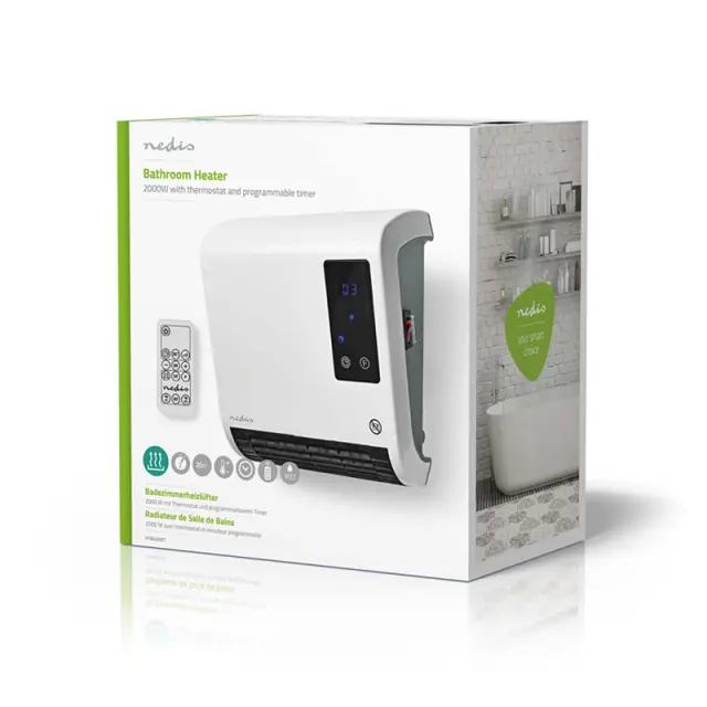 Kopalniški stenski grelnik je dovolj močan, da hitro segreje vsak prostor do 20 m2. Zahvaljujoč nastavljivemu termostatu lahko nastavite temperaturo točno tako, kot želite. Programabilni časovnik vam omogoča, da nastavite urnik vklopa/izklopa za vsak dan v tednu, do 6 programov na dan. Funkcija samo ventilatorja vam omogoča pihanje zraka skozi prostor, ne da bi ga segrevali. Za maksimalno udobje je priložen daljinski upravljalnik in zahvaljujoč LED zaslonu si lahko ogledate vse pomembne nastavitve naenkrat. Kopalniški grelnik ima celo zaznavanje odprtih oken, kar pomeni, da se samodejno izklopi, ko pride do nenadnega padca temperature.