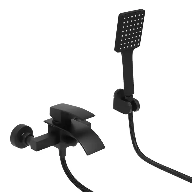 Stenski mešalnik za kopel z vodopadom, dvojni izhod za vodo, moderna črna obdelava, Kot prikazano