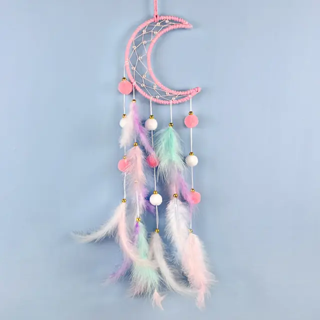 Boho chic stil: Dodajte pridih boho šarma svoji spalnici, dnevni sobi ali otroški sobi s tem čudovitim roza lovilcem sanj v obliki lune. Njegova dovršena oblika in nežno perje ustvarjata muhast in očarljiv ambient.