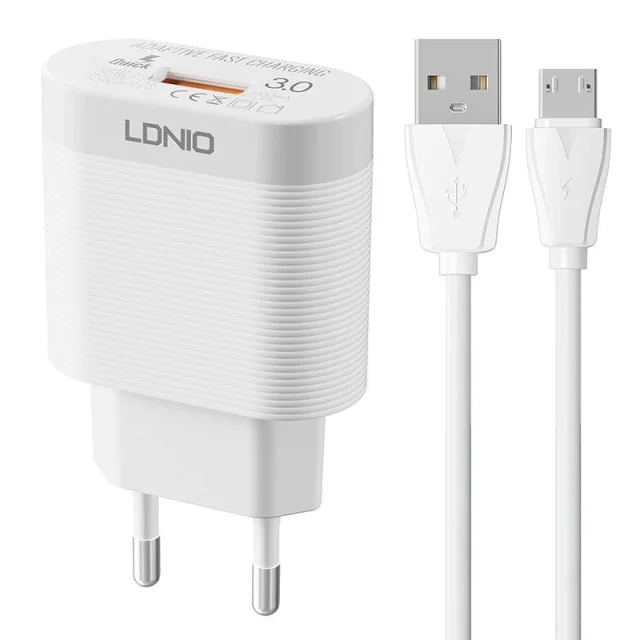 Omrežni polnilec LDNIO A303Q je odličen za potovanja - je lahek in kompakten, zato ne bo zavzel veliko prostora. Še več, ponuja hitro polnjenje in deluje s široko paleto naprav. V kompletu je tudi mikro USB kabel.