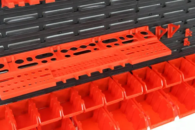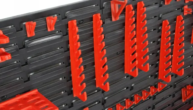 Vzdržljiv PVC material: Organizator je izdelan iz visoko kakovostnega PVC materiala, ki zagotavlja dolgotrajno uporabo in odpornost na obrabo, praske in udarce. To ga naredi idealnega za delavnice in garaže, kjer je vsakodnevna uporaba pogosta.