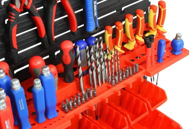 Popolna rešitev za vse, ki želite imeti svoje orodje vedno na dosegu roke in popolnoma organizirano. Stenski predalnik PVC 130-delni organizator orodja je zasnovan za vse vrste delavnic, garaž in domačih delovnih prostorov. Ta velik, trpežen organizator s kar 130 predali omogoča urejeno shranjevanje vseh vrst majhnih in srednje velikih orodij, pripomočkov, vijakov, matice in drugih drobnih delov.