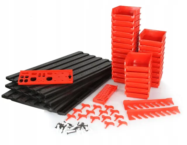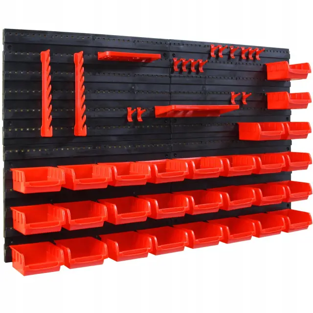 Stenska montaža: Organizator je zasnovan za montažo na steno, kar omogoča učinkovito uporabo prostora. Z lahkoto ga lahko pritrdite na steno in s tem sprostite delovno površino, obenem pa boste imeli vse svoje orodje in dodatke vedno pri roki.