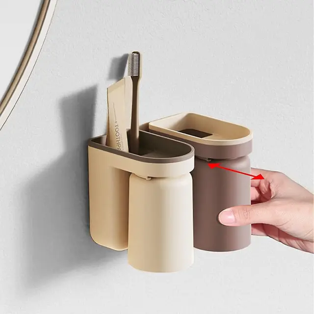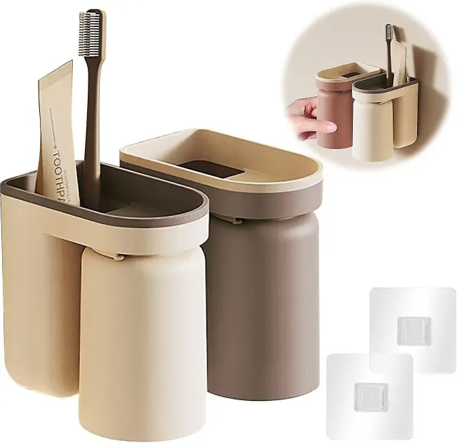 Stensko držalo za zobno ščetko, držalo za električno zobno ščetko, brez vrtanja, 2 skodelici