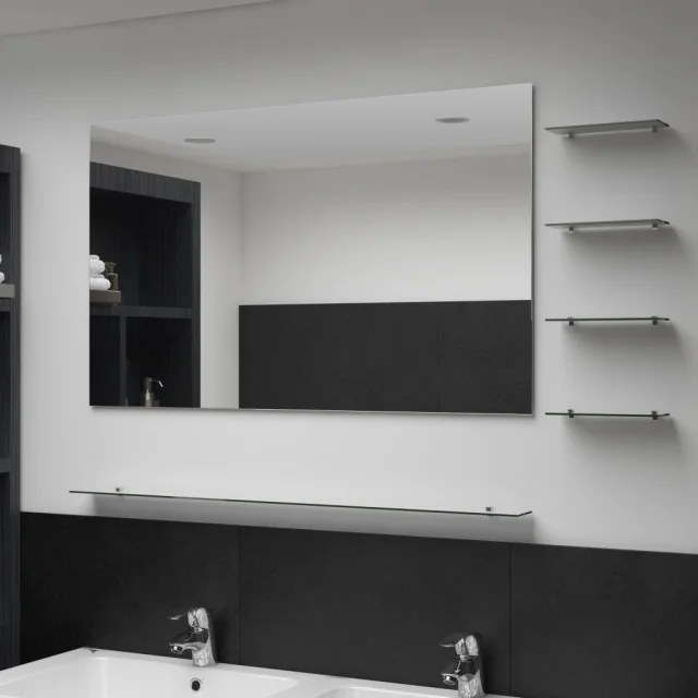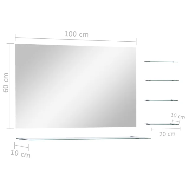 Stensko Ogledalo - Zrcalo - Kozmetično ogledalo s 5 policami srebrno 100x60 cm