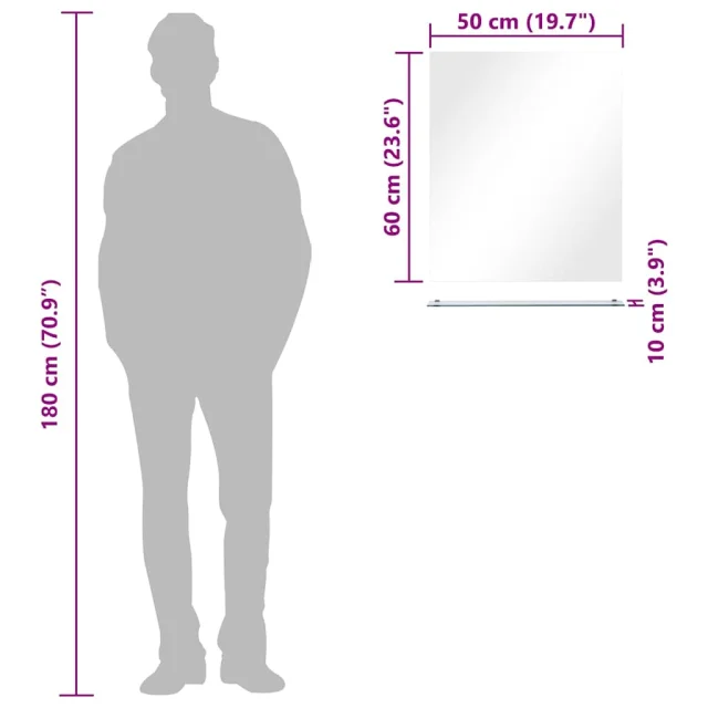 Stensko Ogledalo - Zrcalo - Kozmetično ogledalo s polico 50x60 cm kaljeno steklo