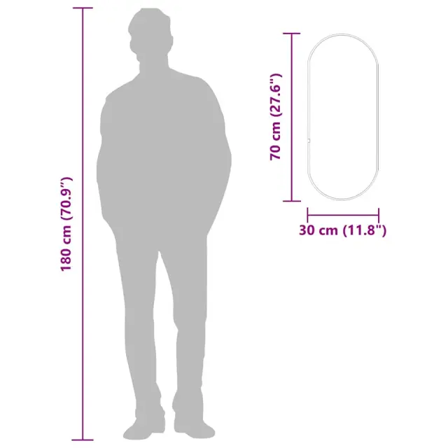 Stensko Ogledalo - Zrcalo - Kozmetično ogledalo srebrno 70x30 cm ovalno