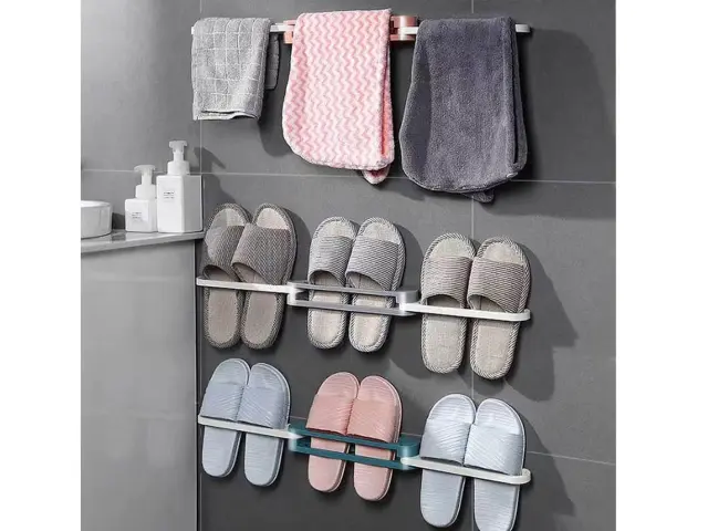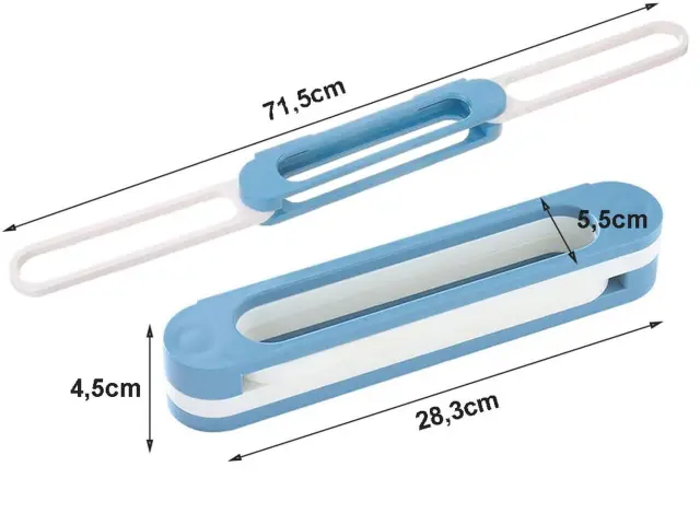 Prekinjeno Hitra in enostavna montaža Prilepljen na steno Zlaganje Za shranjevanje: copati, čevlji, brisače Dolžina: 28,3 cm Širina: 5,5 cm Višina: 4,5 cm Dolžina v raztegnjenem stanju: 71,5 cm Barva naključna
