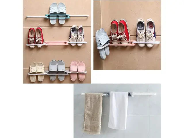 Stensko zložljivo stojalo za copate – držalo in obešalnik