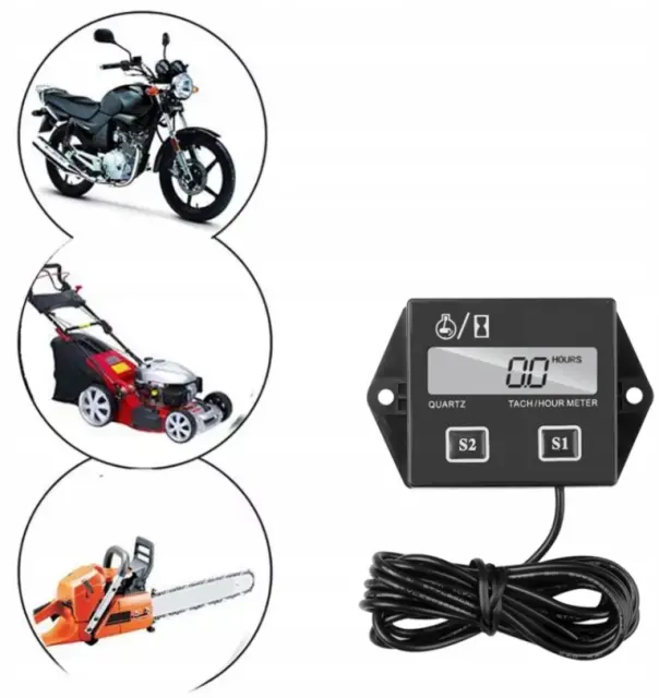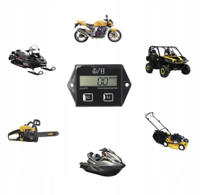 UNIVERZALNO – Števec delovnih ur je univerzalna naprava – združljiv bo z vsemi 2- in 4-batnimi motorji z notranjim zgorevanjem . Merilnik delovnih ur motorja se lahko uporablja npr. pri motornih kolesih, kosilnicah, terenskih vozilih, generatorjih električne energije, skuterjih itd .