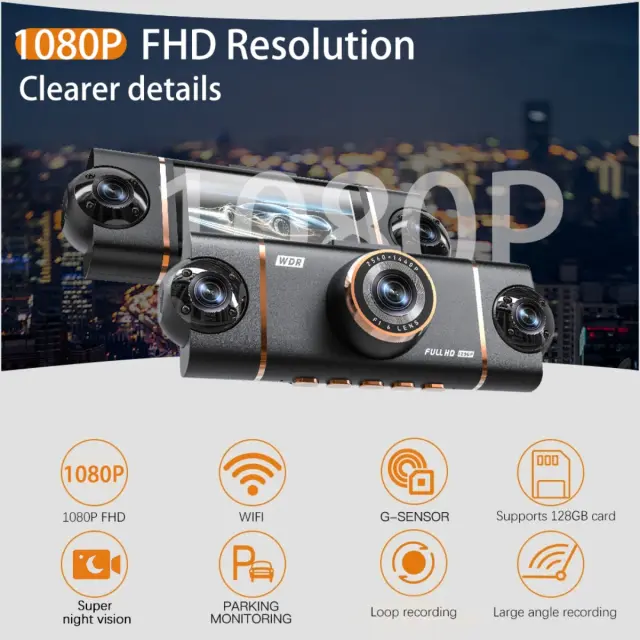 Celovito štirikanalno snemanje: Posnemite vsak kot s to štirikanalno kamero za armaturno ploščo, ki ima sprednjo, levo, desno in zadnjo lečo. To zagotavlja popolno pokritost okoli vašega vozila in zagotavlja, da nobena podrobnost ni zamujena. Sočasno snemanje iz vseh štirih kamer ponuja neprimerljivo varnost in dokaze v primeru nesreč ali incidentov. Idealen za profesionalne voznike, družine in vse, ki iščejo maksimalno zaščito na cesti, ta sistem zagotavlja brezskrbnost s svojimi celovitimi nadzornimi zmogljivostmi. Nastavitev s štirimi lečami zagotavlja, da imate popoln zapis vsega, kar se dogaja okoli vašega vozila, zaradi česar je neprecenljivo sredstvo za dokumentiranje nesreč in varnost.