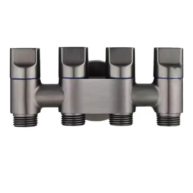 Vsestranska štirismerna zasnova: s priročno konfiguracijo enega vhoda in štirih izhodov lahko hkrati povežete več naprav, ki uporabljajo vodo, kot so pralni stroj, stranišče, bide in umivalnik.