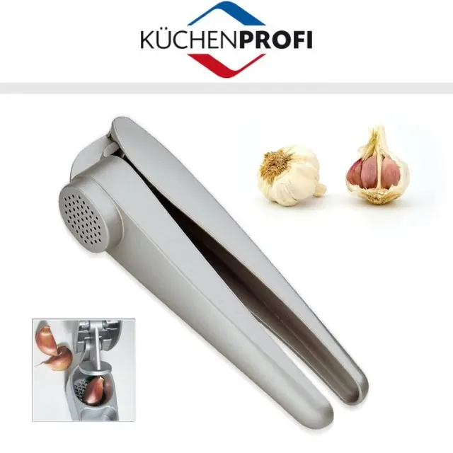 Stiskač je namenjen stiskanju neolupljenih strokov česna. S stiskanjem ročice potrebujete le majhno silo, da pridete do lepo sesekljanega česna.