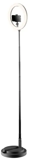 Zložljiva LED obročna luč Cellularline Selfie Ring Foldable s stojalom in Bluetooth daljincem. Kompaktna oblika, nastavljiva višina in 3 načini osvetlitve. Idealno za potovanja.