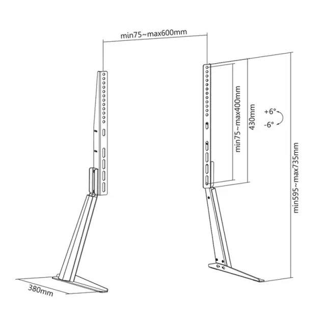 VESA standardi: navpično od 75 do 400 mm, širina je poljubno nastavljiva