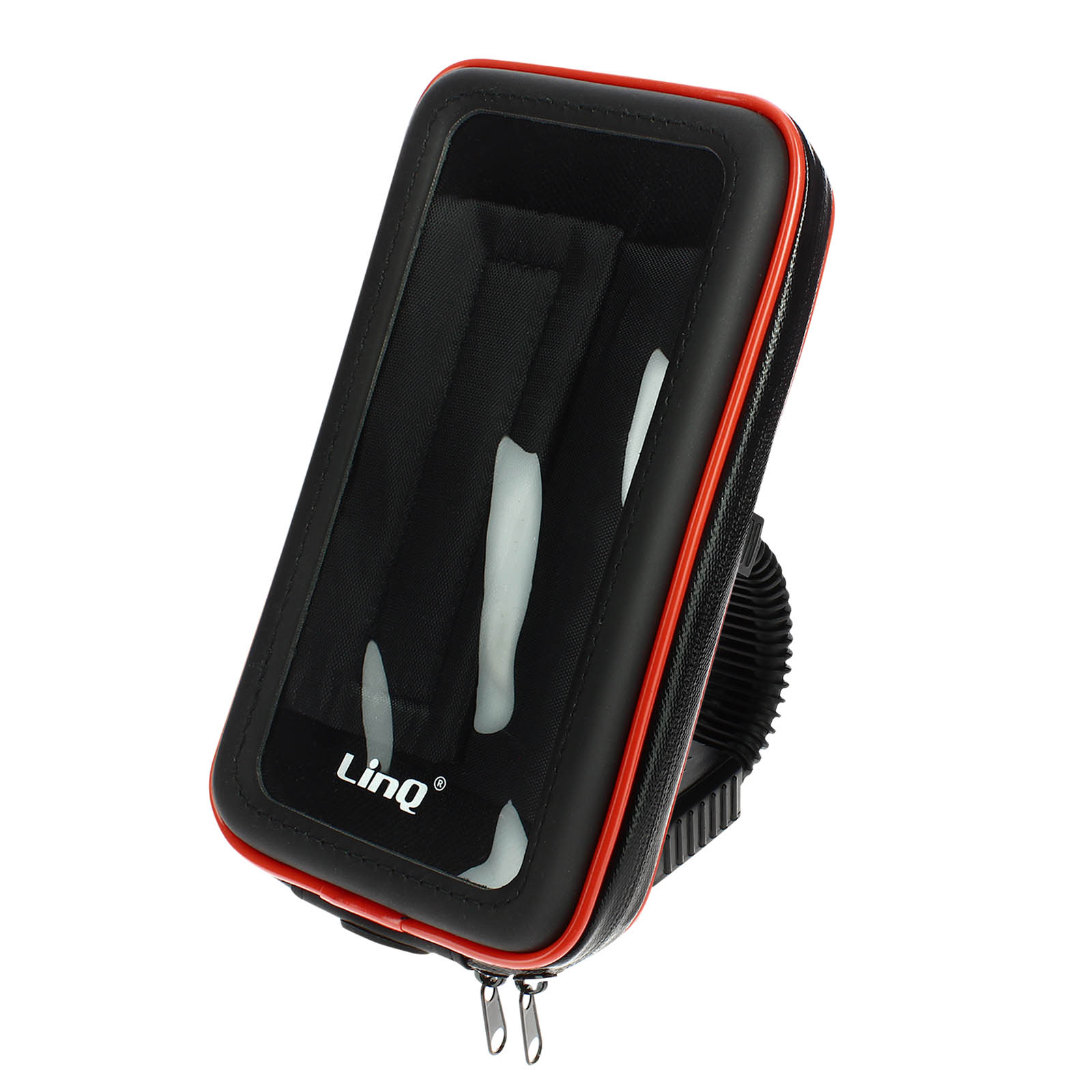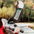 Ta nosilec za motorno kolo za pametne telefone do 6,3\" se pritrdi na vzvratno ogledalo in vodi vašo pot tudi v deževnem vremenu zahvaljujoc vodoodpornemu pokrovu z zadrgo. Na voljo je odprtina za prehod slušalk. Fleksibilna roka in vrtenje za 360°.