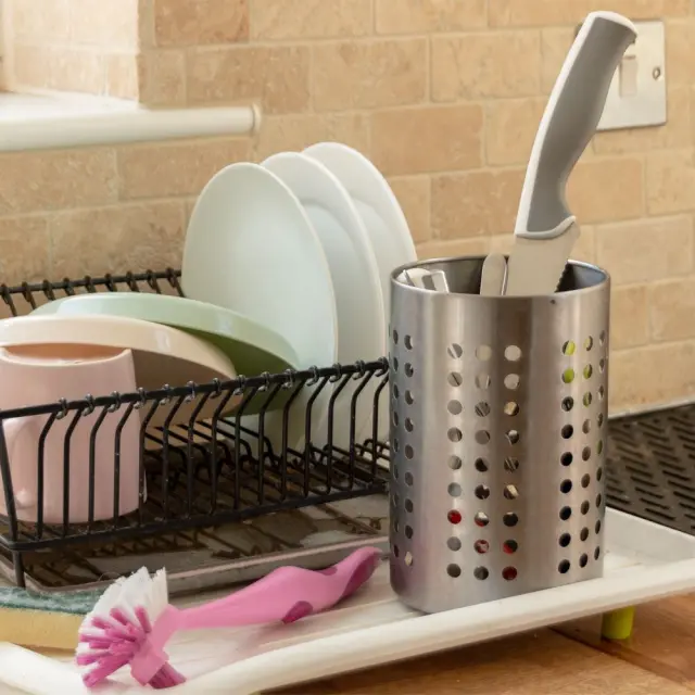 Stojalo za odcejanje kuhinjskih pripomočkov, srebrno