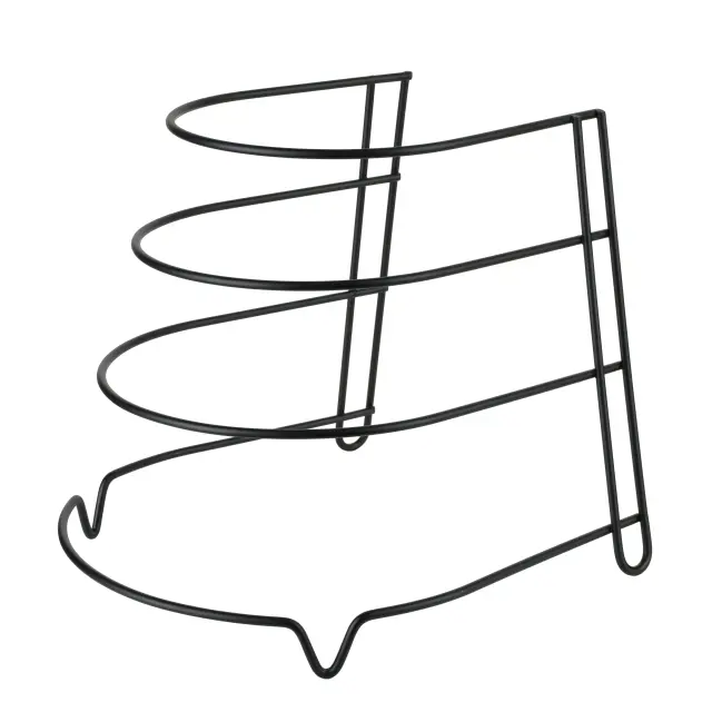 Stojalo je zasnovano za hrambo do treh ponv različnih premerov – preprečuje praske in olajša hiter dostop do posamezne peke. Stabilna konstrukcija zagotavlja varno postavitev in dolgo življenjsko dobo. Enostavno za uporabo in vzdrževanje; embalaža: folija. Izdelek ni primeren za pomivanje v pomivalnem stroju.