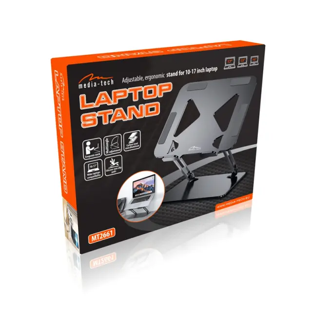 Nastavljivo, ergonomsko stojalo Media-Tech MT2661 za 10-17" prenosnike in tablice.