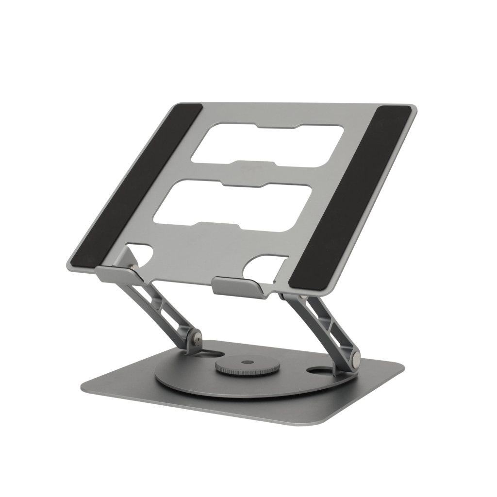 Velikost prenosnika: 10-17" Največja obremenitev (kg): 5 Vrtenje: 360° Barva: Siva Material: Aluminij, silikon Mere (mm): 220x240x58 Teža (g): 900