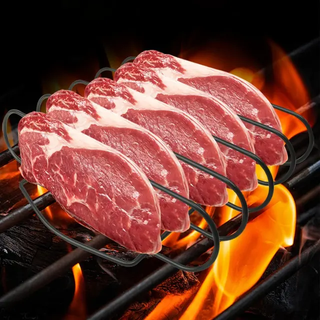 【Stabilna stabilna struktura】 Stojalo za rebra je izdelano iz odebeljene železne žice s prevleko proti prijemanju in natančnim varjenjem. Z zasnovo z dvojnimi železnimi kosi se meso in rebra po vstavitvi v železne rezine ne zdrgnejo tesno, s čimer se izognete težavam, da rebra med peko na žaru padajo in se zibajo. Izboljšajte svojo izkušnjo peke na žaru.