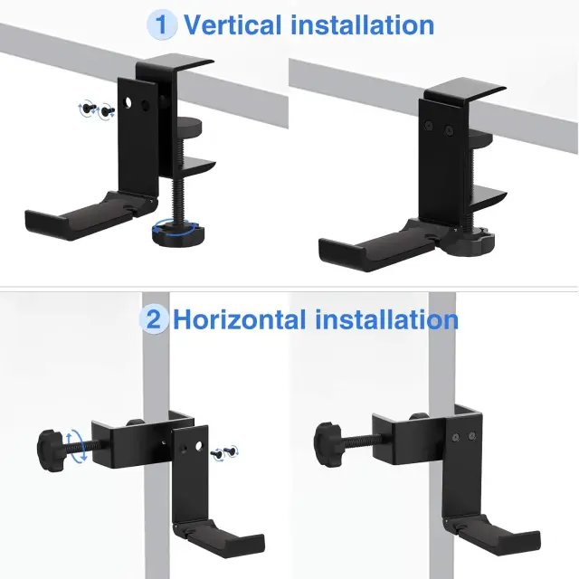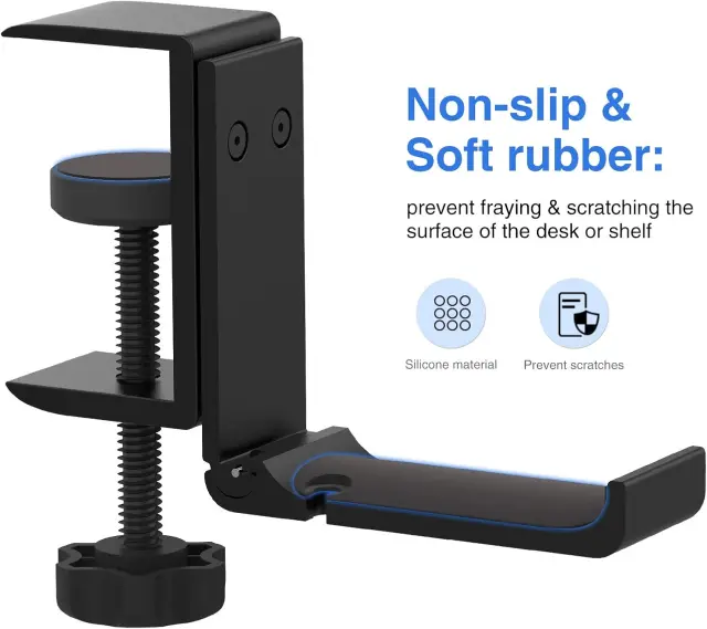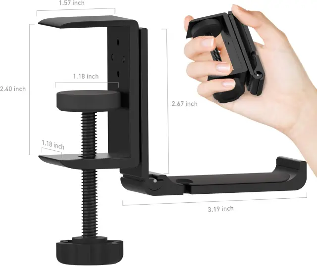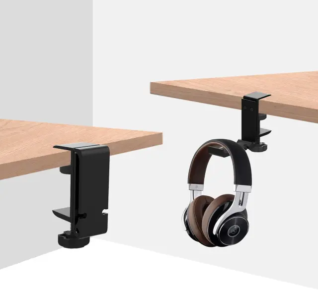Nadgrajen izdelek. Držalo za slušalke pod mizo - Pritrdi se na mize debeline do 5 cm in ozko do 0,5 cm za univerzalno prileganje večini miz.^
