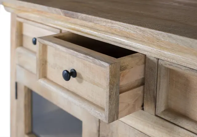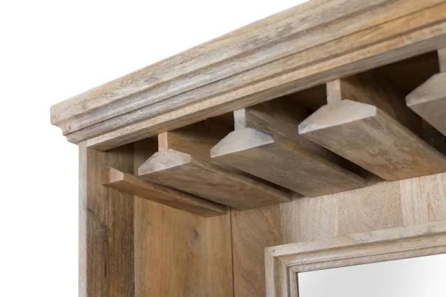 Stojalo za steklenice iz mangovega lesa z osrednjim ogledalom