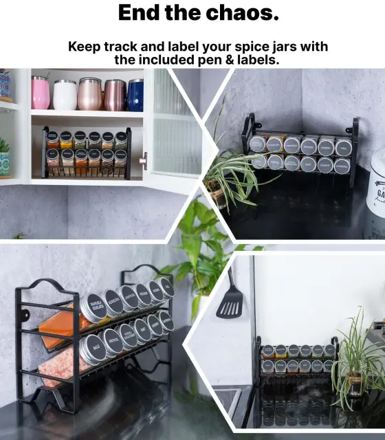 Ne glede na to, ali pri svoji kuhi uporabljate le nekaj svojih najljubših začimb, ali pa radi mešate in kombinirate različne vrste začimb, boste tu našli rešitev zase! Vse svoje začimbe shranite v 12 ločenih kozarčkov. S tem dvonivojskim stojalom za organizacijo lahko začimbe razporedite po želji. Kozarčki so izdelani iz prozornega stekla, zato vam ni treba ugibati, kaj je v njih, niti preverjati, ali vam jih je morda že zmanjkalo.
