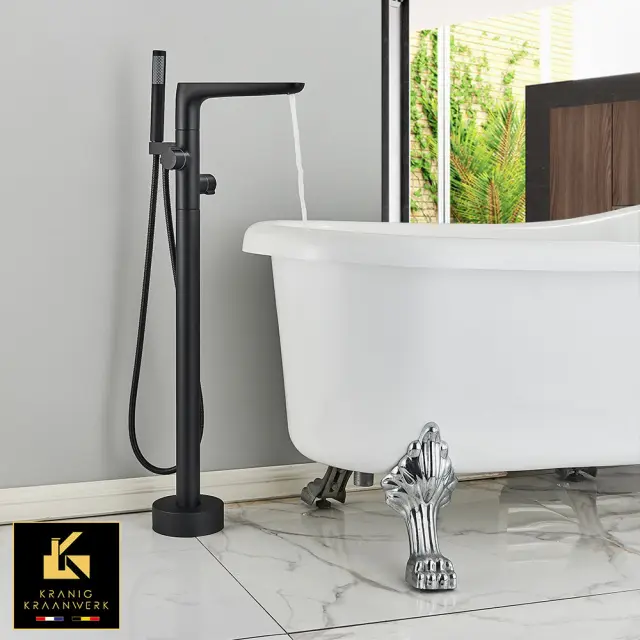 Stoječa kopalna pipa | Elegantna kopalnica | Nico | Črna | Chrome | Brušeno nerjaveče jeklo