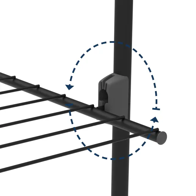 Stabilno in prilagodljivo pokončno sušilno stojalo, idealno za majhne prostore. Ima tri police, ki jih je mogoče posamezno popolnoma ali delno zložiti, kar omogoča številne možnosti sušenja glede na vrsto oblačil.
