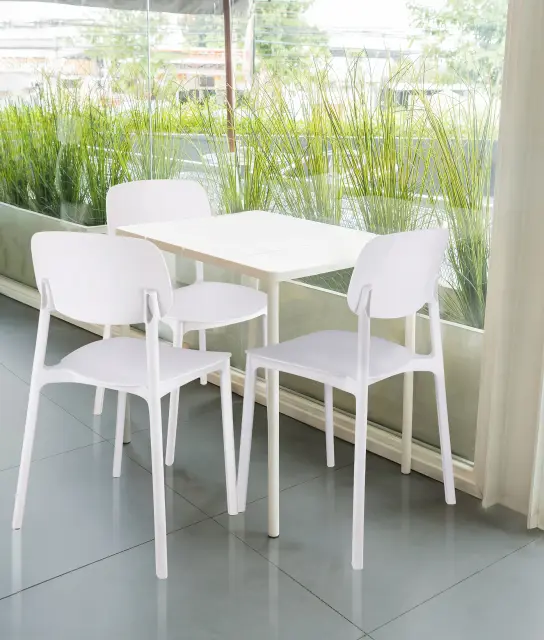 ➡️ Stol je izdelan v eni enoti - ne zahteva sestavljanja in je odporen na vpliv vremenskih pogojev, zato je primeren za uporabo tako znotraj kot zunaj prostorov.