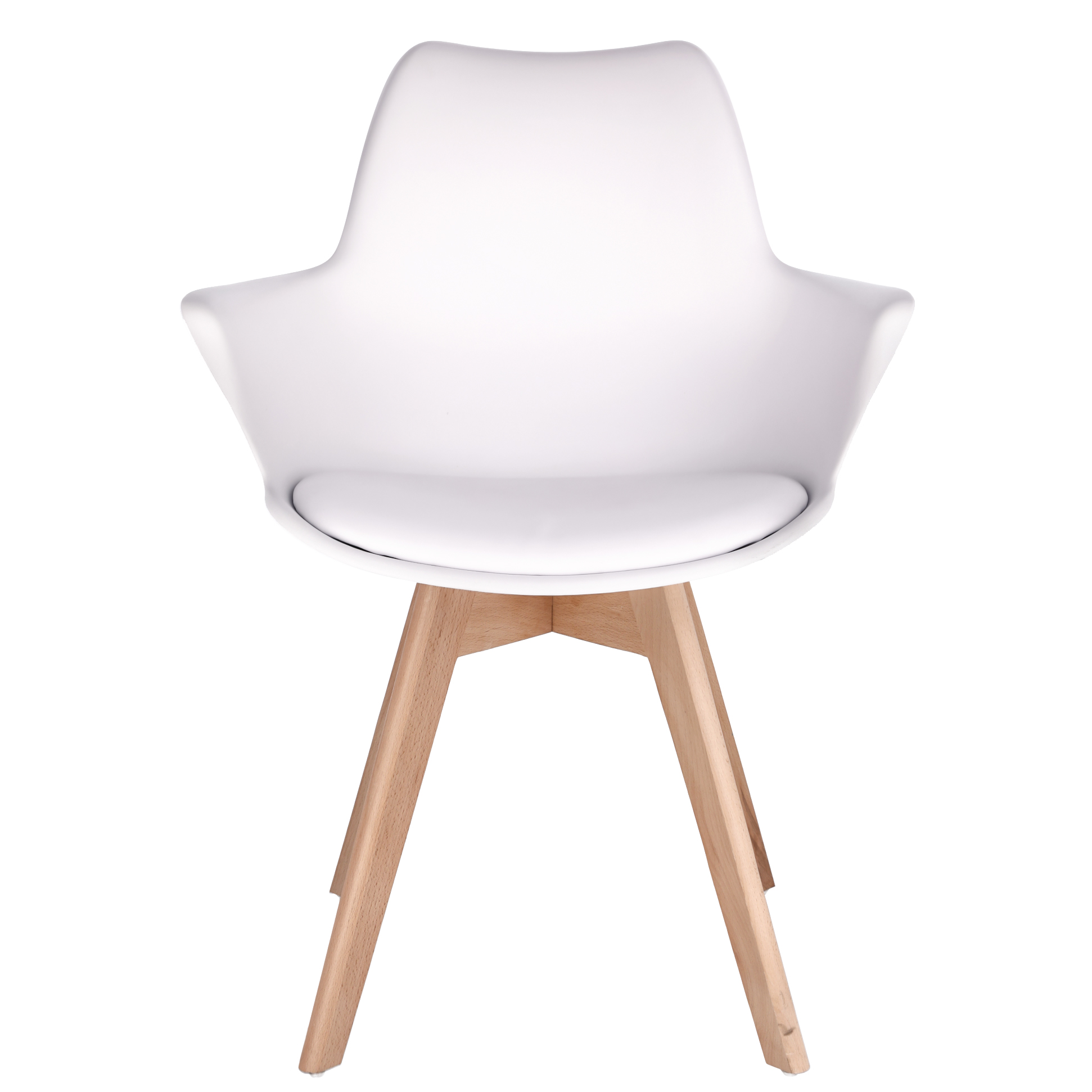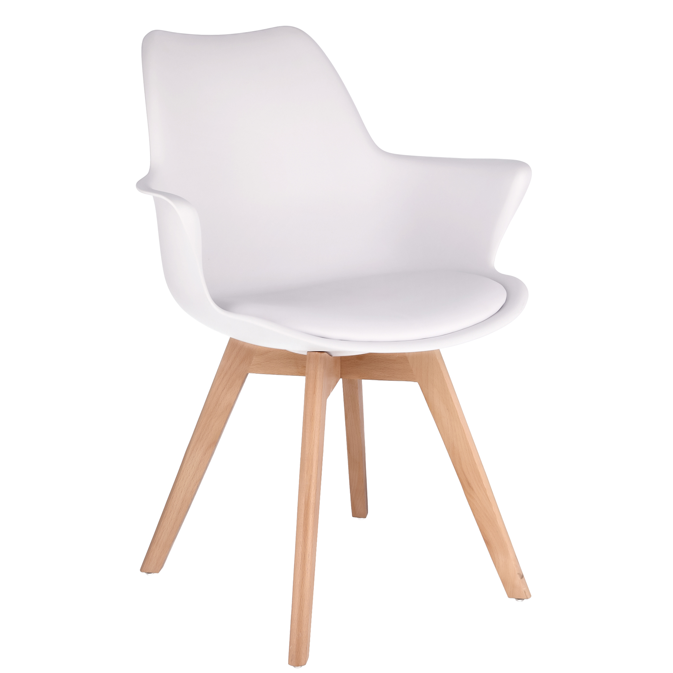 Stol ORLEAN, skandinavski, umetna masa, belo eko usnje