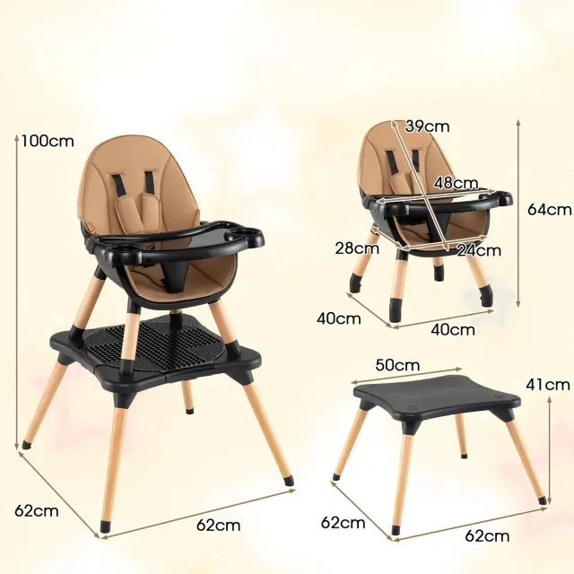 Stol za hranjenje z mizico in odstranljivim dvojnim pladnjem, rjav